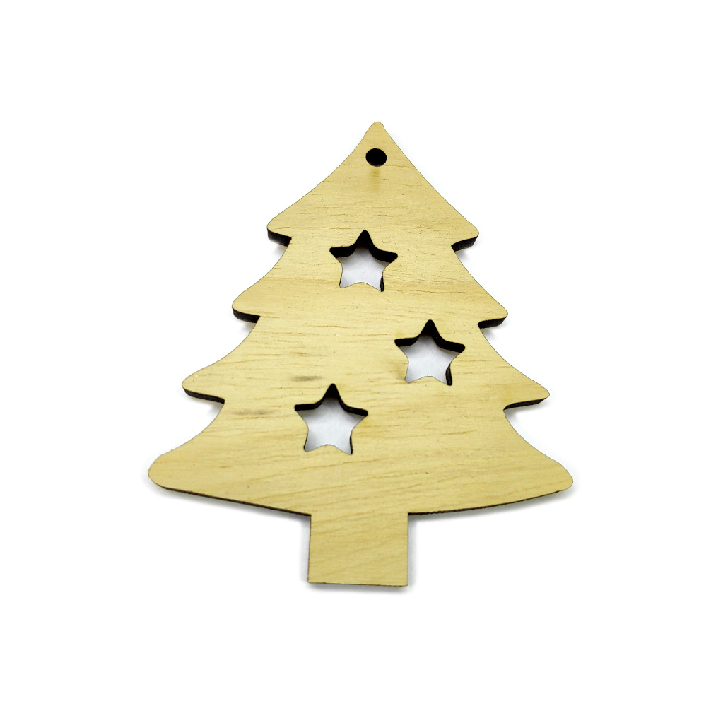 Ξύλινο στολίδι Δέντρο με αστέρια 8×6,5cm – Σετ 5τμχ.