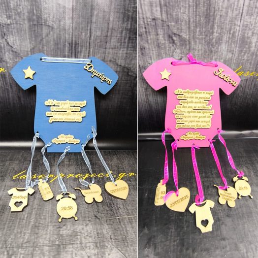 Ξύλινο αναμνηστικό φορμάκι με όνομα και στοιχεία γέννησης